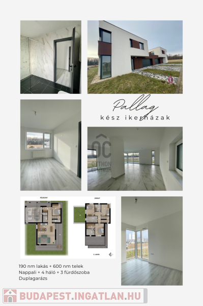 A házban amerikaikonyhás nappali, 4 hálószoba és 3 fürdőszoba található, valamint egy 40 nm-es terasz is rendelkezésre áll.