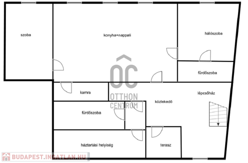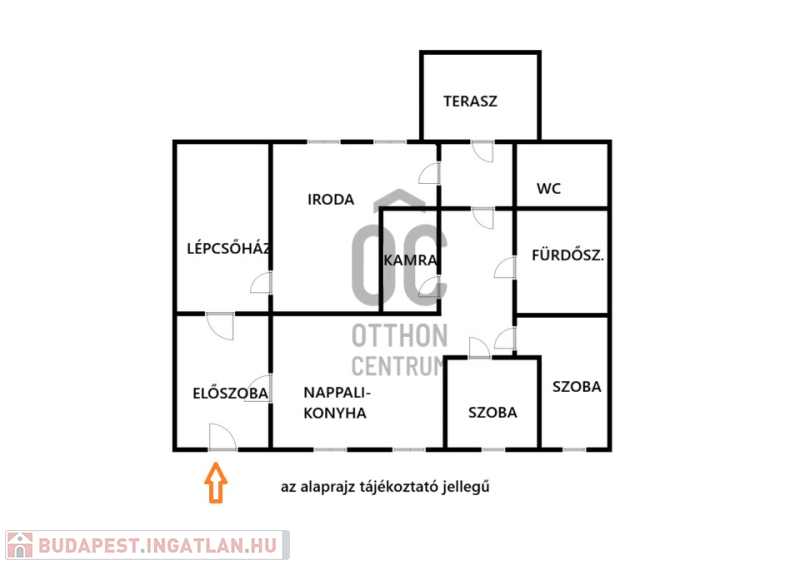 - földszint cc 100nm-s : nappali-konyha, 2 hálószoba , kamra, fürdőszoba, és egy külön iroda helyiség mosdóval , található