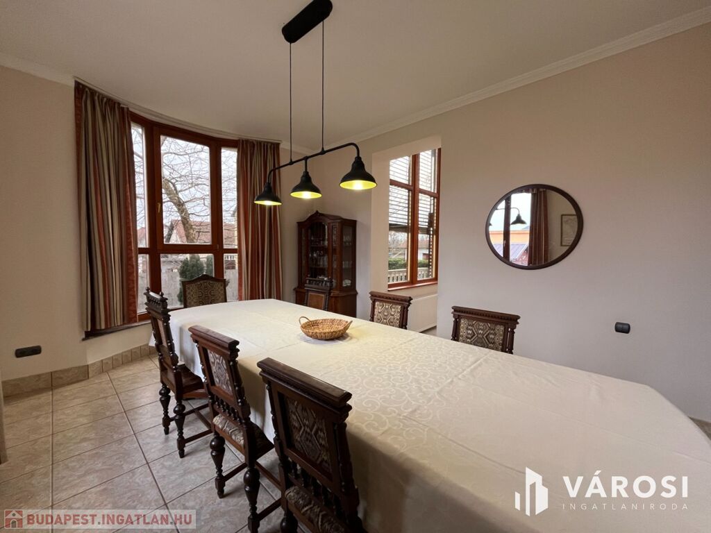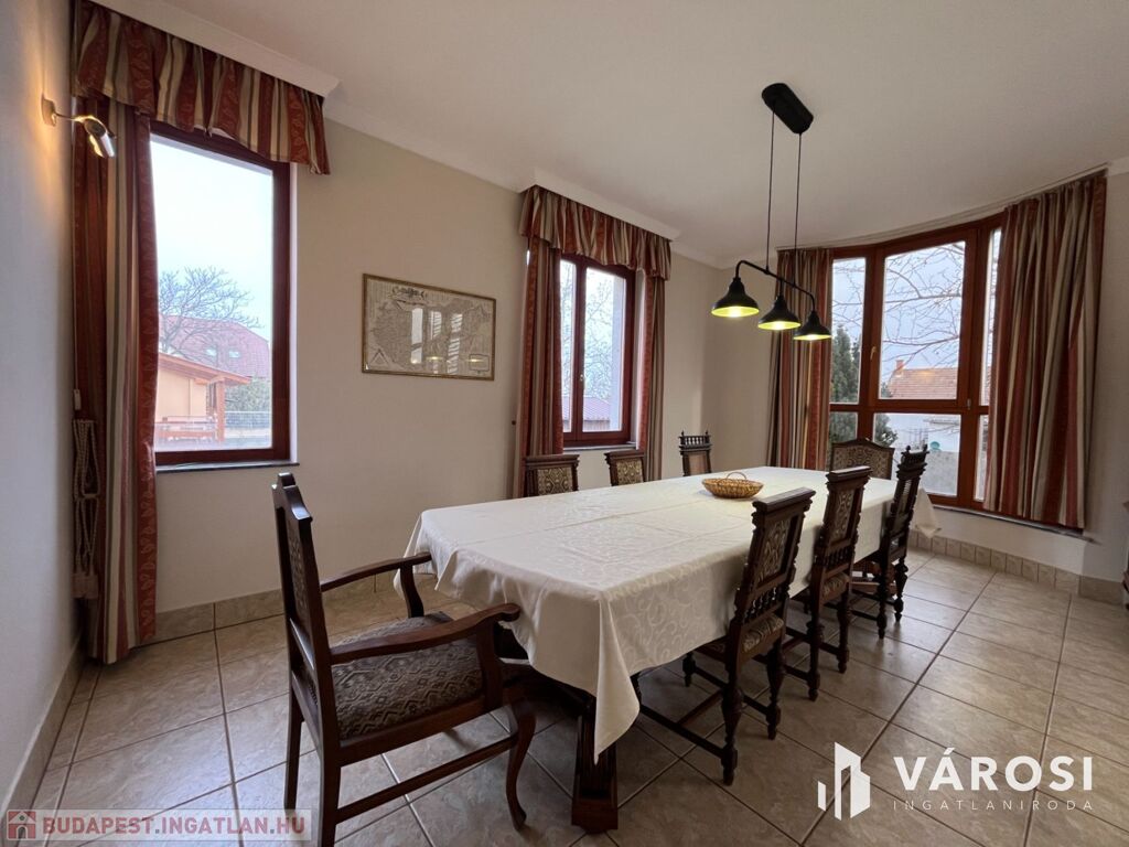Ez a 3 szintes, 296 m²-es lakótérrel rendelkező, kiváló állapotú ingatlan ideális választás akár nagycsaládosoknak vagy üzleti ingatlant keresőknek is. Az összesen 5 hálószobával, 2 tágas nappalival, nagy étkezővel, konyhával kamrával és 3 modern fürdőszobával rendelkező ház kényelmes életet biztosít az egész család számára. Az ingatlan külön fürdő és WC helyiségekkel is rendelkezik, ami tovább fokozza a lakók kényelmét.