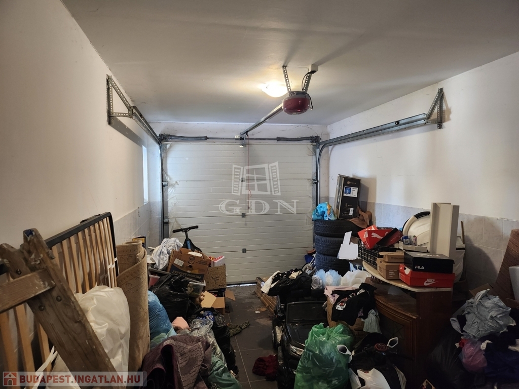 Természetesen az épület minden pontja riasztóval felszerelt. A garázs távirányítóval nyitható, illetve a garázsba a házból is be lehet jutni. Egy nagy térkövezett, fedett terasz is rendelkezésünkre áll, ahova a házból egy nagy toló ajtón keresztül könnyen kijuthatunk.