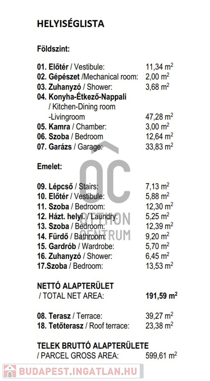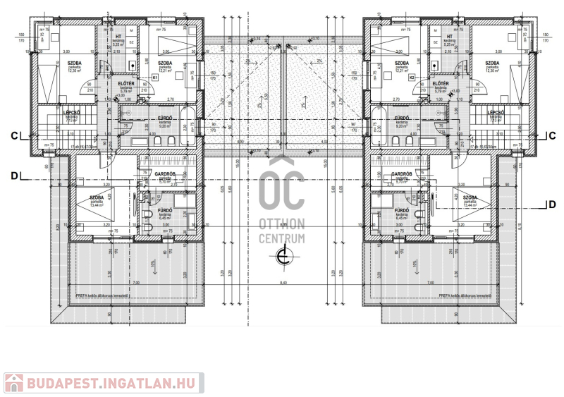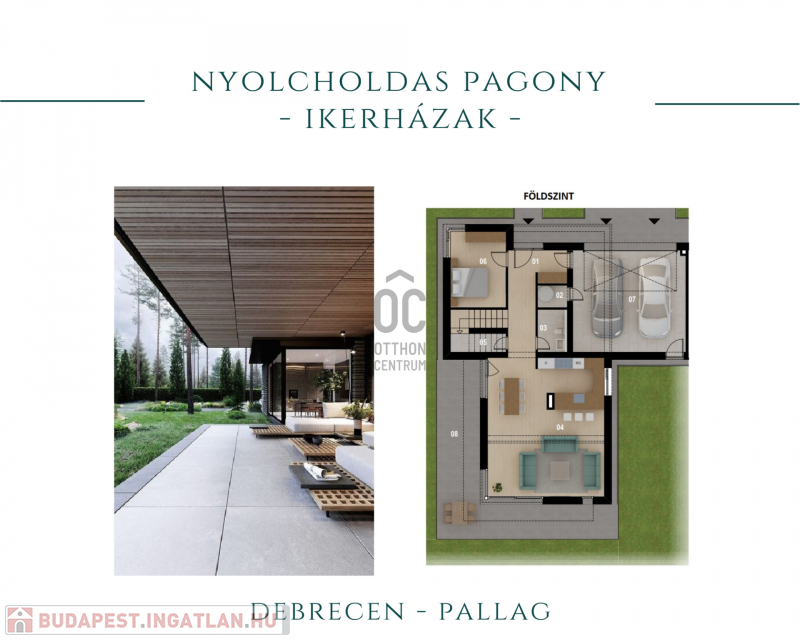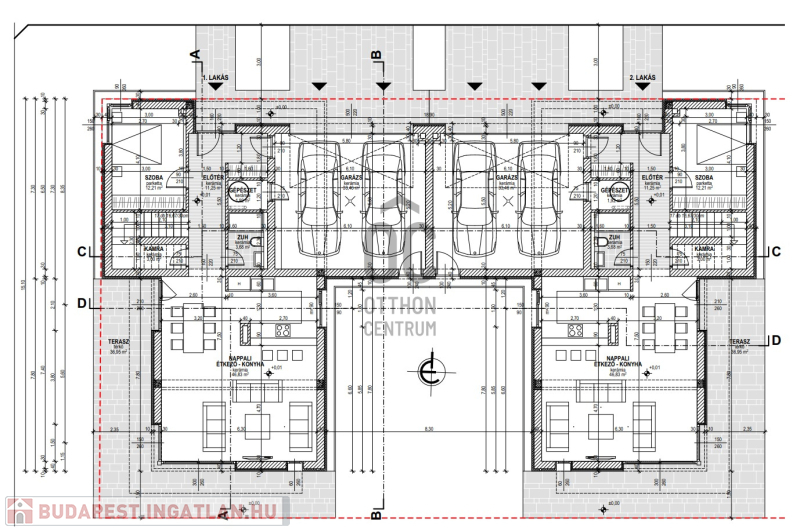 Az ikerházak 2.lakása: 190nm alapterületű, nappali + 4 szobás, 600 nm-es telekrésszel.