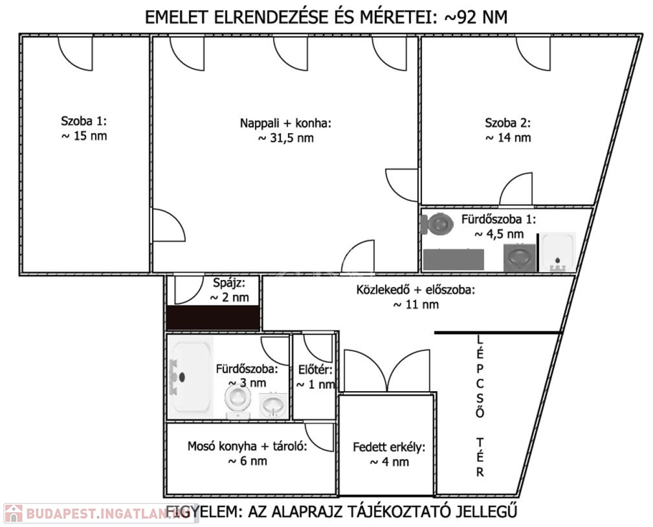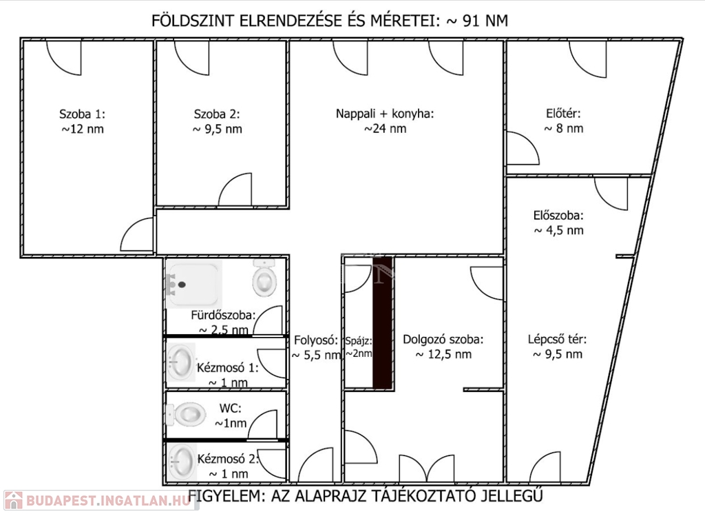 - az ingatlan méretei: 91nm+92nm+95nm= 278 nm.
