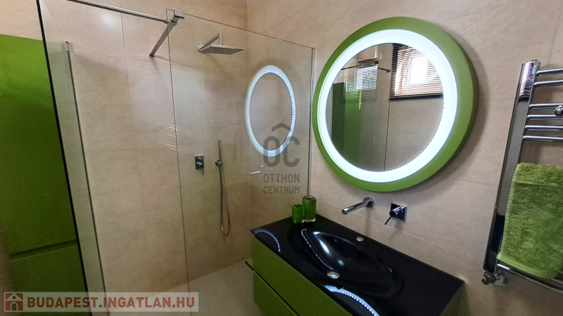 - tágas, formatervezett, nívós anyagokból megvalósított fürdőszoba