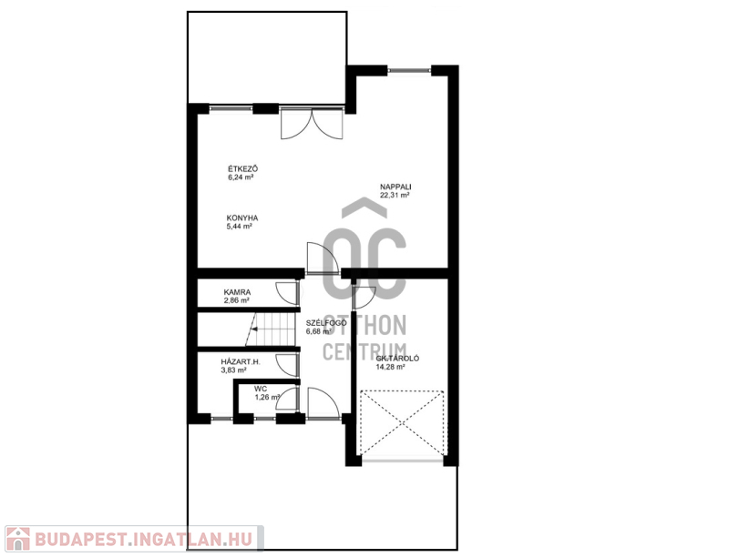 -földszinten tágas nappali-konyha-étkező