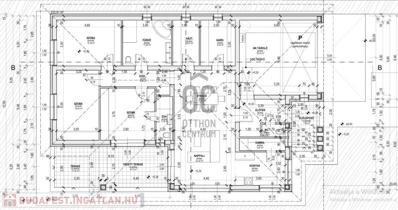 - helyiségei: 45 nm-s terasszal kapcsolatos tágas, világos konyha-étkező -nappali, 3 hálószoba (melyek 15 nm-ek), 2 fürdő szoba, háztartási helyiség, gardrob, kamra, garázs