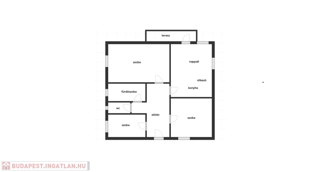 -tágas, 30 m²-es nappali-étkező-konyha közvetlen teraszkapcsolattal