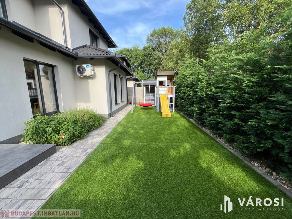 Debrecen Vámospércsi út közelében a Balla lakóparkban, gyönyörű madárcsicsergős zöldövezetben, 180 nm-es 4 szoba nappalis újszerű igényes ház eladó. Az ingatlanhoz dupla garázs tartozik, és szépen parkosított 470 nm-es kert van hozzá, ahol helyet kapott egy nagy fedett terasz, és a hátsó kertben egy gyereksarok játszóházzal. A ház alsó szintjén helyezkedik el a nappali, tágas étkező konyha amelyből közvetlen terasz kapcsolat van, egy szoba és egy zuhanyzós fürdőszoba. A felső szintre érkezve a közlekedőből három hálószoba nyílik és egy kádas fürdőszoba, plusz egy mosókonyha wc-vel. Az ingatlan valóban gyönyörű erdőkkel tarkított csendes zöldövezetben található, ahol tényleg megvan az emberben az igazi otthon érzés. Nézze meg próbálja ki, nem fog csalódni!