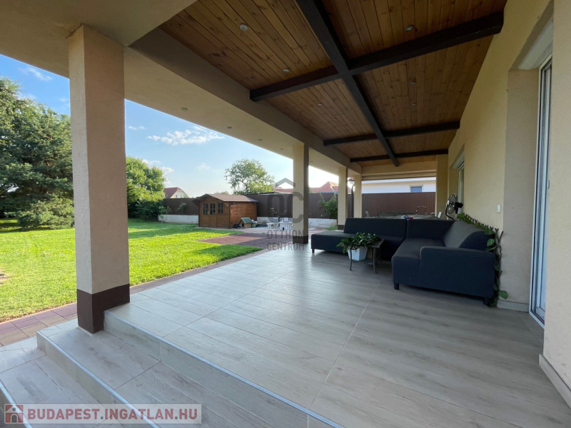 Csendes, kertvárosi környezetben, 1346 m²-es, teljes közműves telken eladó egy 2017-ben épült, egyedi tervezésű, kiváló állapotú családi ház, kiemelkedően alacsony fenntartási költségekkel és magas műszaki tartalommal.