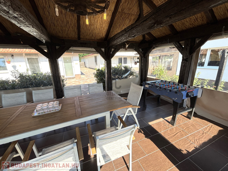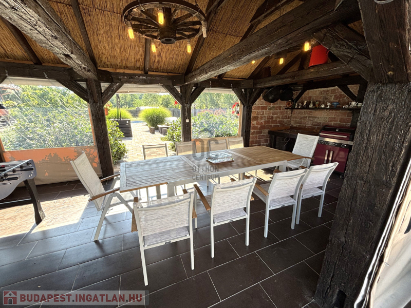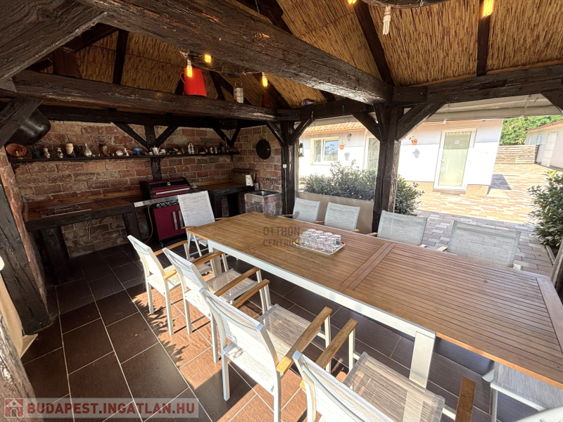 - Emellett vendégház, nyári konyha és fedett kinti konyha biztosítja a kényelmes kinti kikapcsolódást