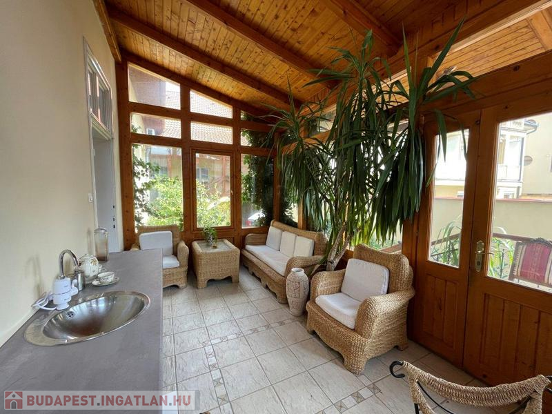 Az ingatlanhoz egy belsõ, idilli, hangulatos 330 m2-es kert is tartozik. Ez a zöld oázis üde színfolt a belvárosban, tökéletes helyszín a kikapcsolódásra, feltöltõdésre, vagy egyszerûen csak a város zajától való elvonulásra.