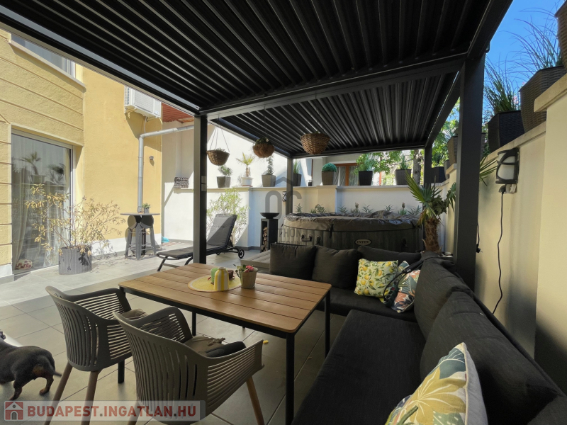 - Tágas, részben fedett terasz: 37 m²