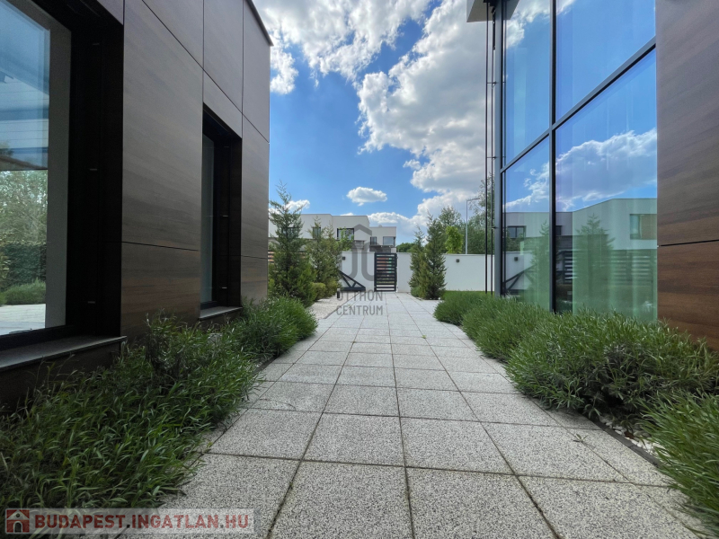 Az 550 m²-es, intim, elkerített telken elhelyezkedő luxusotthon egyszerre képviseli a modern dizájn letisztult világát és a kifinomult ízlés legmagasabb szintjét.