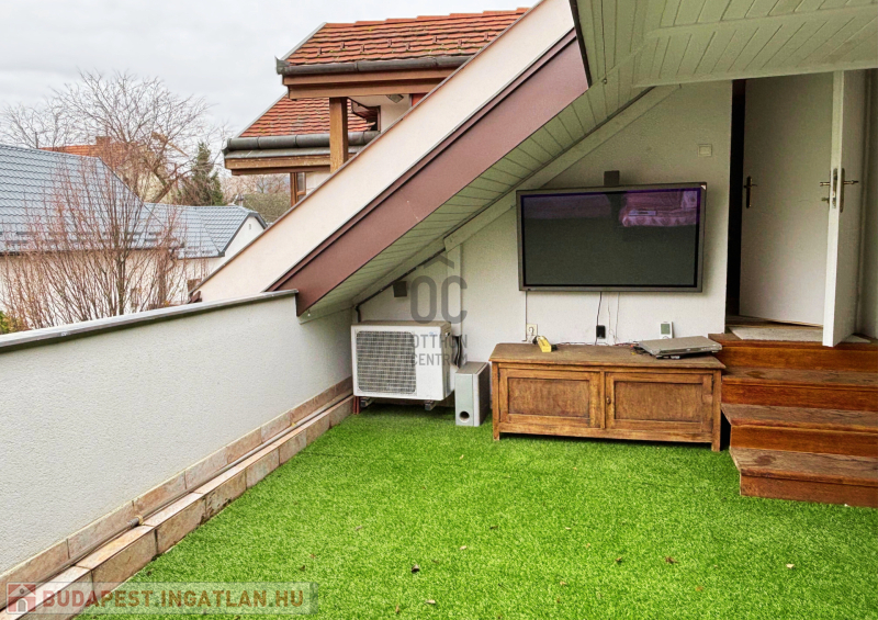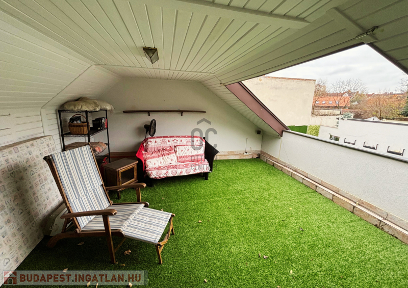 - Az egyik hálóból egy 29 m²-es, félig fedett panorámaterasz érhető el, amely teljesen intim, senki nem lát be, hangulatos, tágas és csodás kilátással rendelkezik. Ez a ház egyik legkülönlegesebb pontja.