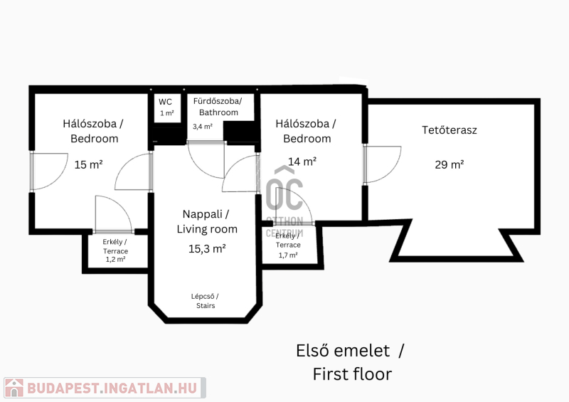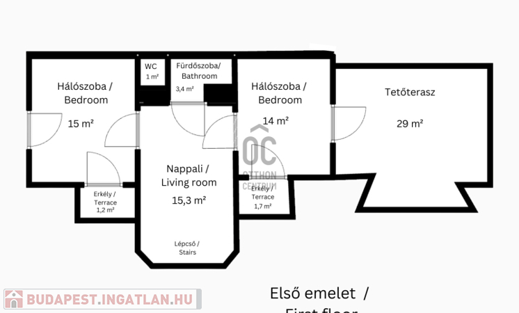 - Mindkét hálószoba saját kis erkéllyel rendelkezik