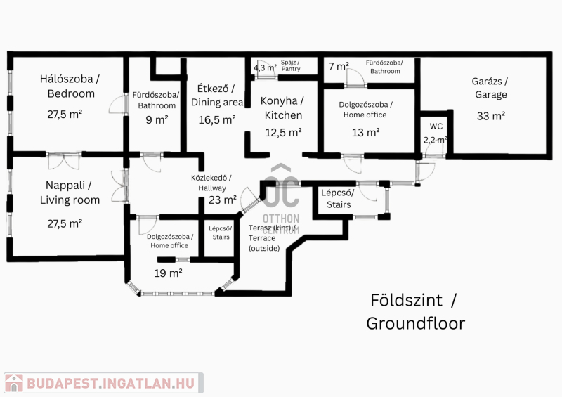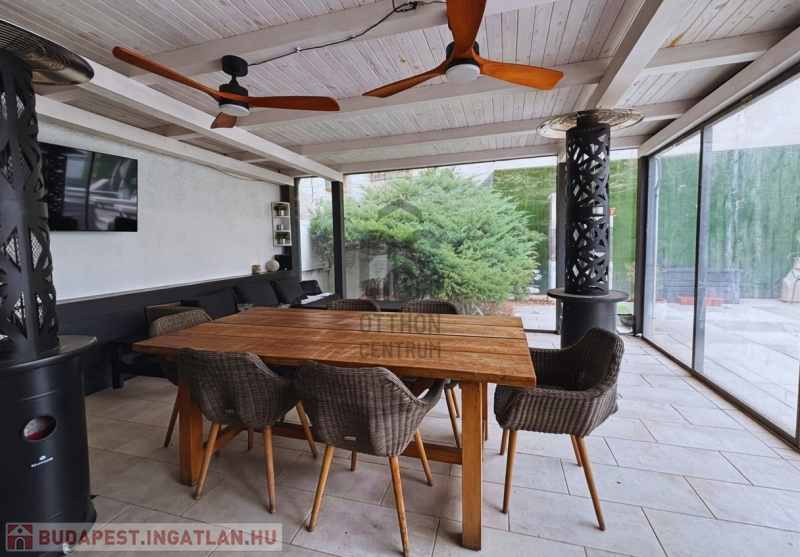 + kb. 100 m² extra terület (teraszok, filagória, garázs, medencetér)