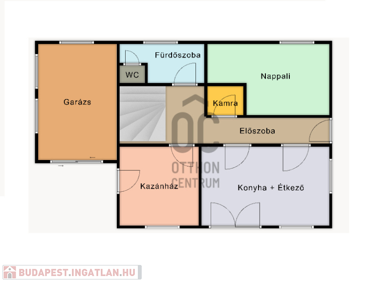 Nappali + 2 hálószobás az ingatlan, melynek fűtése vegyes tüzelésű kazánnal és klímával történik.