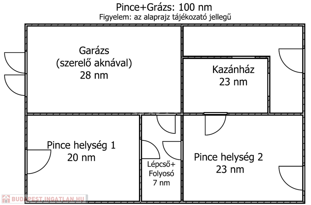 A garázs+pince hasznos alapterülete 100nm, melyben található: