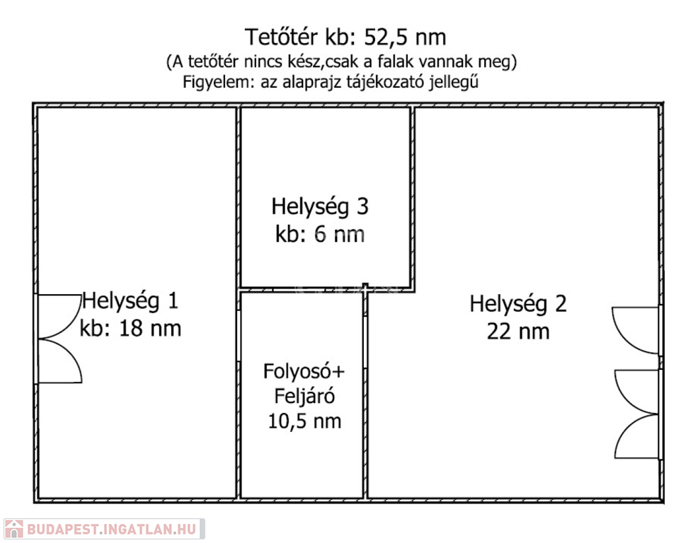 A tetőtér hasznos alapterülete 55nm, melynek kiépítése már félig megvalósult, a befejezése az új tulajdonosra vár.