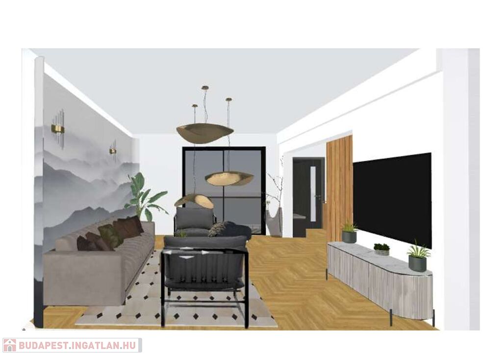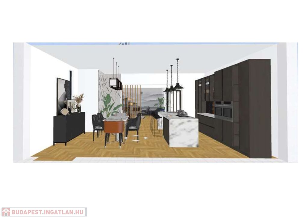 A földszinten konyha + étkező, lépcsőház valamint egy szoba, Wc és külön zuhanyzós fürdőszoba található. Felújítás során a teljes magasföldszint, tágas közös térré alakítható (inspirációként néhány tervet tartalmaz a képanyag).