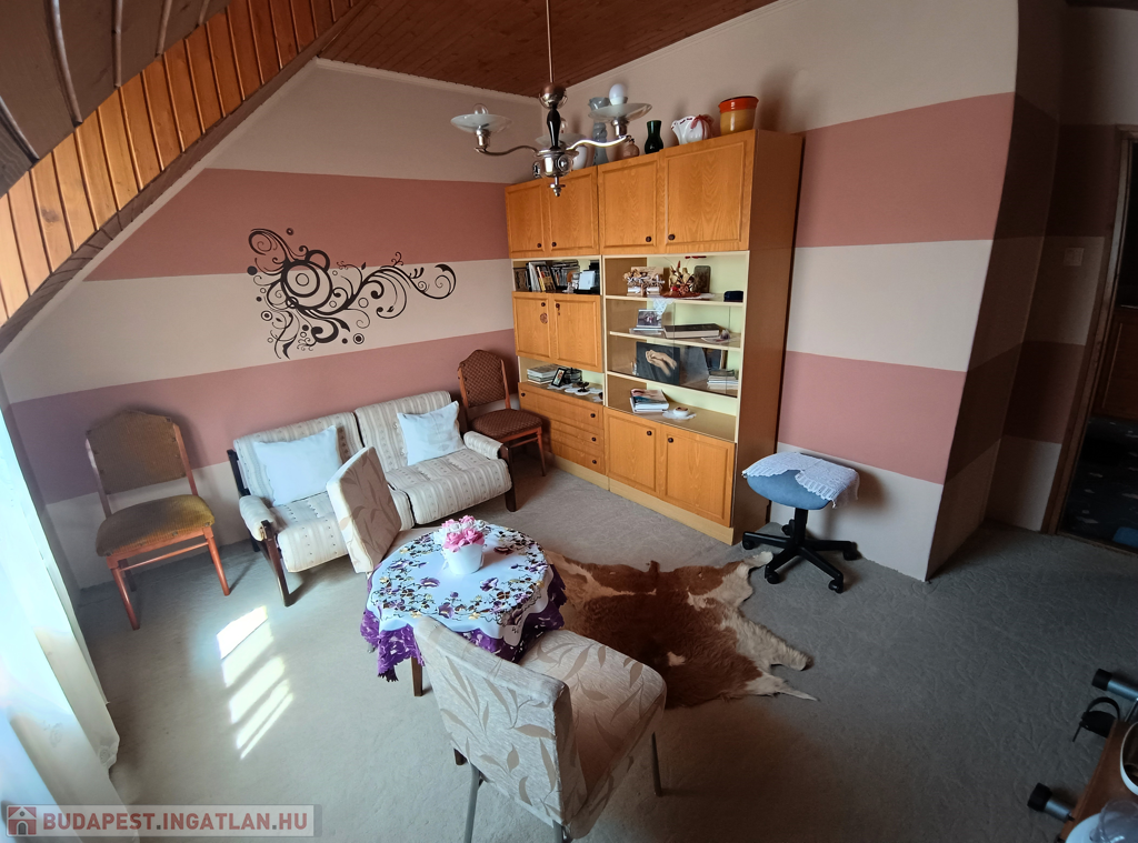 - Az emelet helyiségei: társalgó, két hálószoba, fürdőszoba.