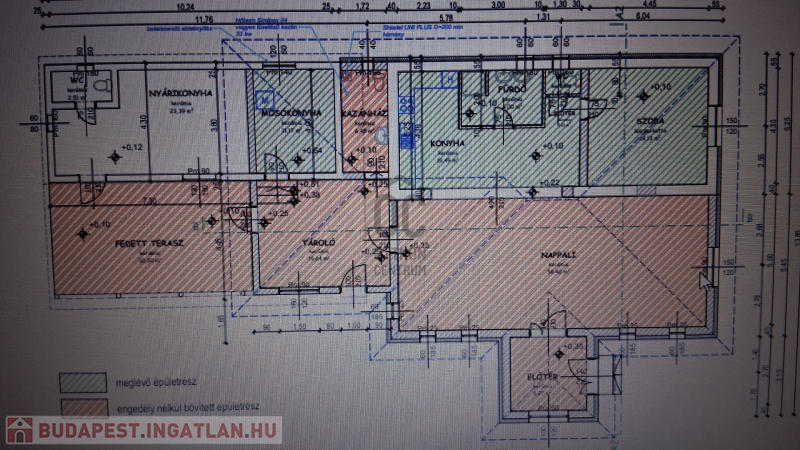 - 176 m² lakóház + 30 m² fedett terasz- a jelenlegi 3 szoba akár 5 szobává is alakítható, melyhez minden feltétel adott