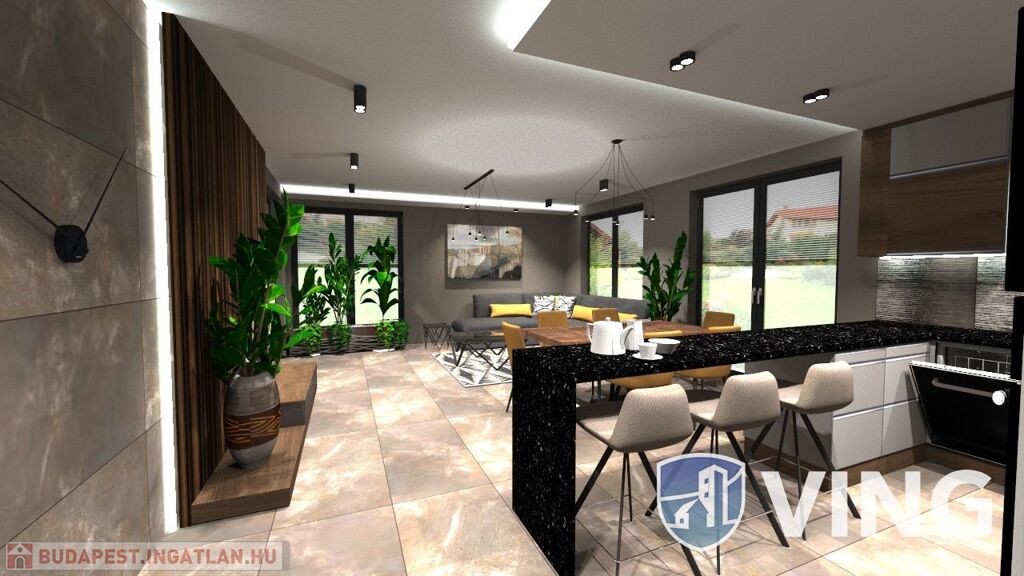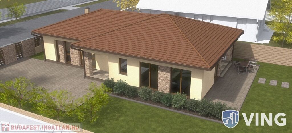 A hirdetésben szereplő ház 120 m2 alapterületű, amerikai konyhás nappali + 4 hálószobás elrendezésű 2 fürdőszobával. Igénybe vehető rá minden fajta állami támogatás és CSOK+ hitel, illetve ÁFA visszaigénylés is!