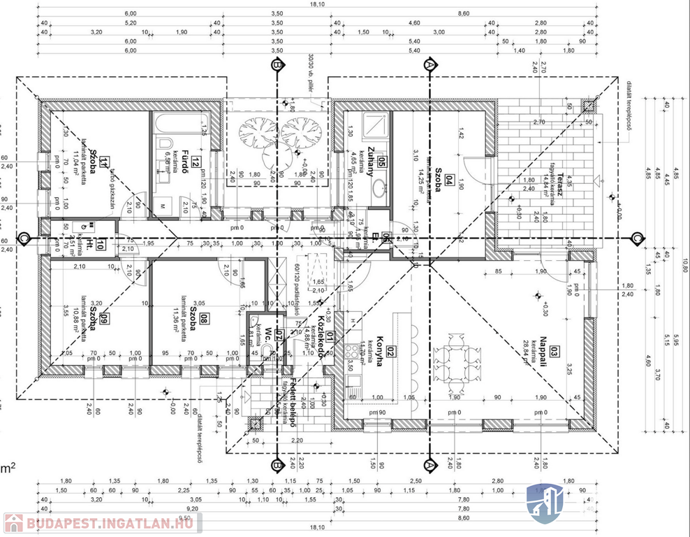 - 30 cm kerámia csiszolt tégla falazat, 10 cm grafitos hőszigeteléssel, fehér nemesvakolattal
