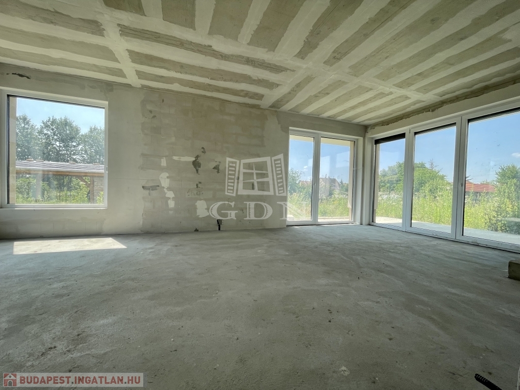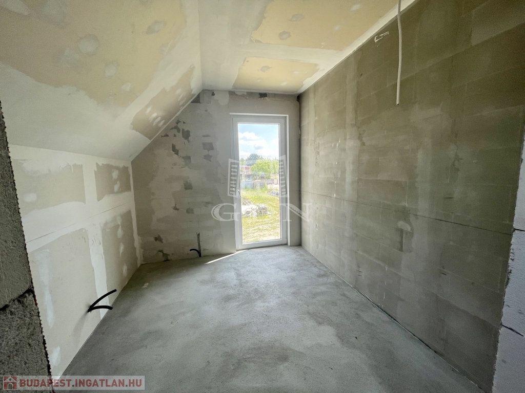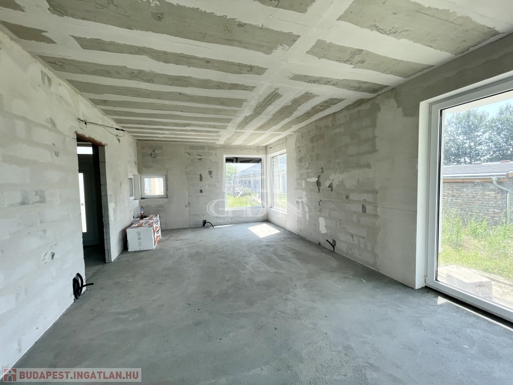 Tető alatt van, bent vannak a nyílászárók redőnnyel és szúnyoghálóval, A ház szigetelve és színezve van. A válaszfalak állnak, a fűtés és elektromos hálózat elő van készítve, be van csövezve.