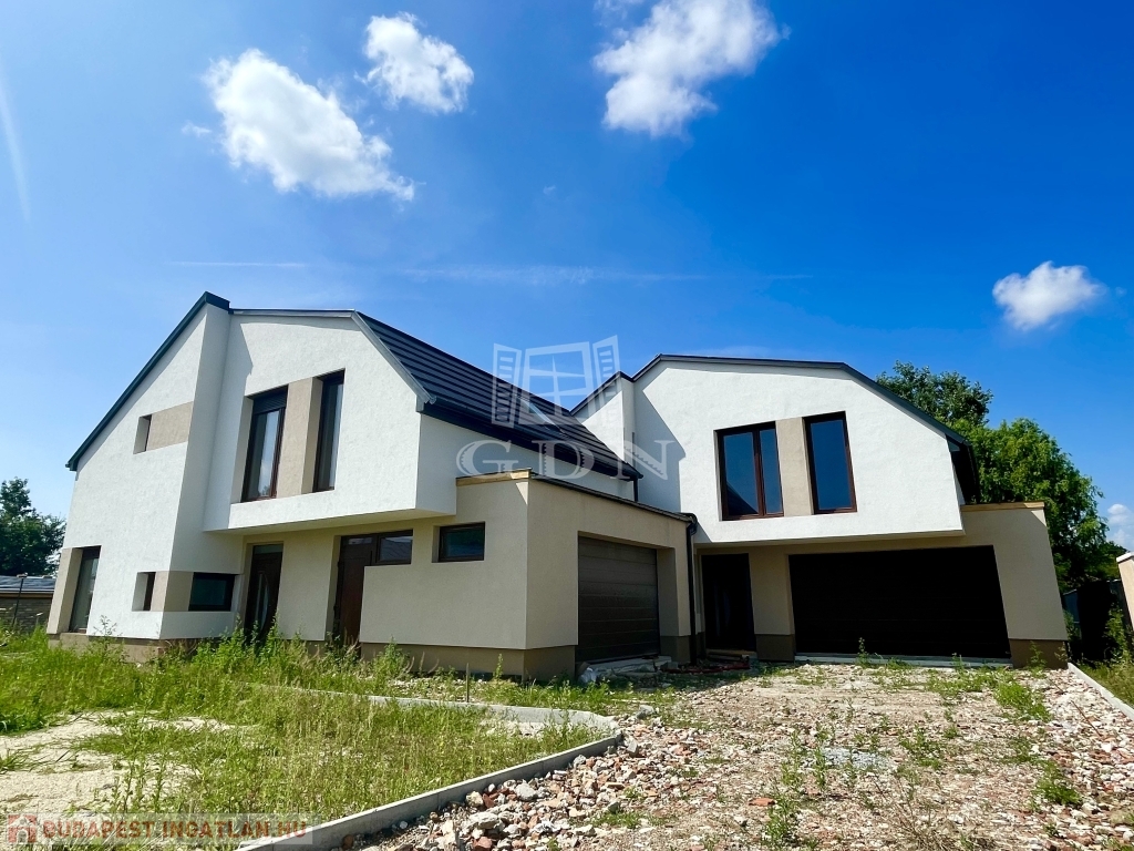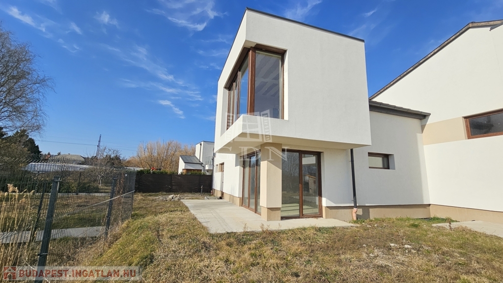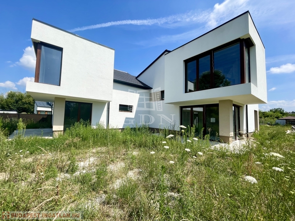A MODERN, egyedi stílusú ház Diósd zöldövezetében, csendes utcában, újépítésű házak közt, magasfeszültségű oszlopoktól távol található.