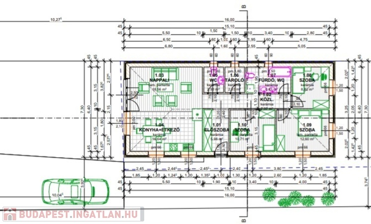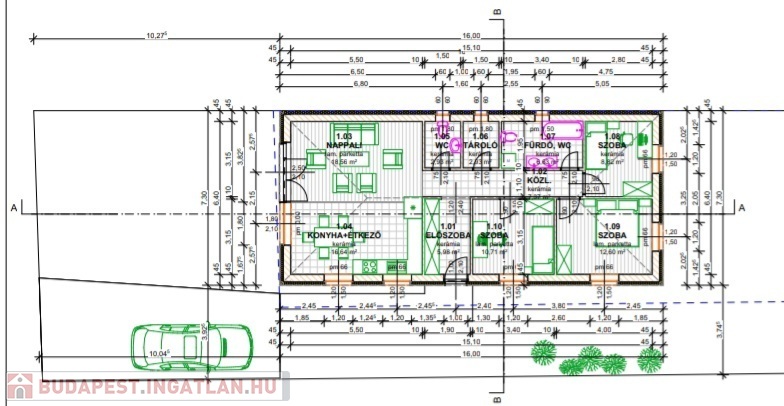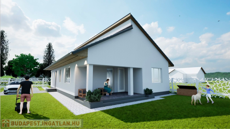 Kiváló adottságú telek előnyeit figyelembe véve alaposan átgondolt tervezés alapján épül az ingatlan benapozottsága optimális.