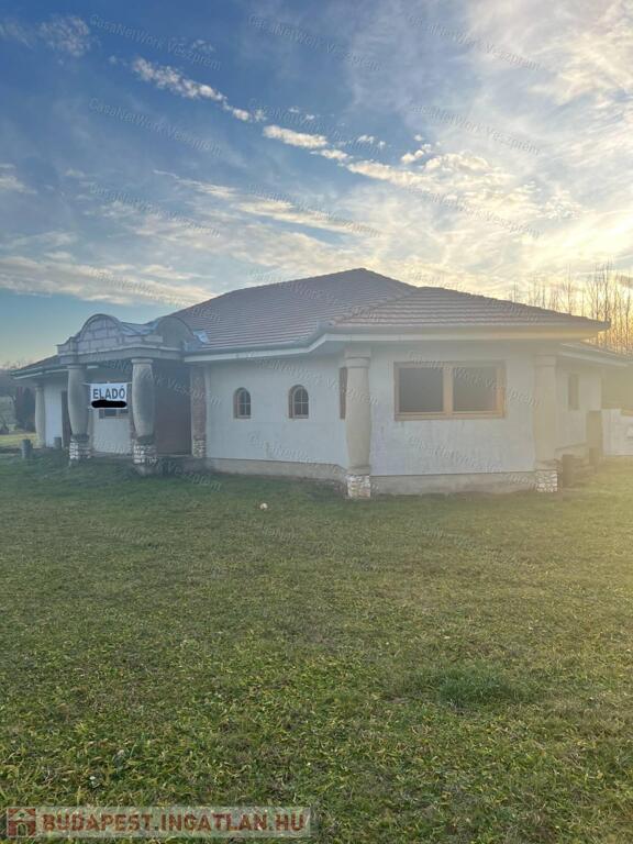 Eladó Döbröntén, a Bakonyalján, Pápától mindössze 14 km-re egy panorámás, 5547 m²-es telken álló, 210 m²-es szerkezetkész ingatlan. A telek közvetlenül az erdő mellett fekszik, így igazi bakonyi hangulat, nyugalom és természetközeli környezet várja az új tulajdonost. Az épület jelenlegi állapotából kifolyólag az elrendezés teljes mértékben az új tulajdonos ízlésére van bízva.