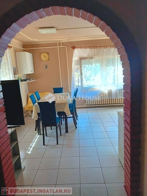 Dömsöd központi elhelyezkedésű, mégis forgalommentes utcájában, rendezett környezetben, jó szomszédsággal kínálunk eladásra egy 94 m²-es, összkomfortos, tetőtér-beépítéses családi házat.