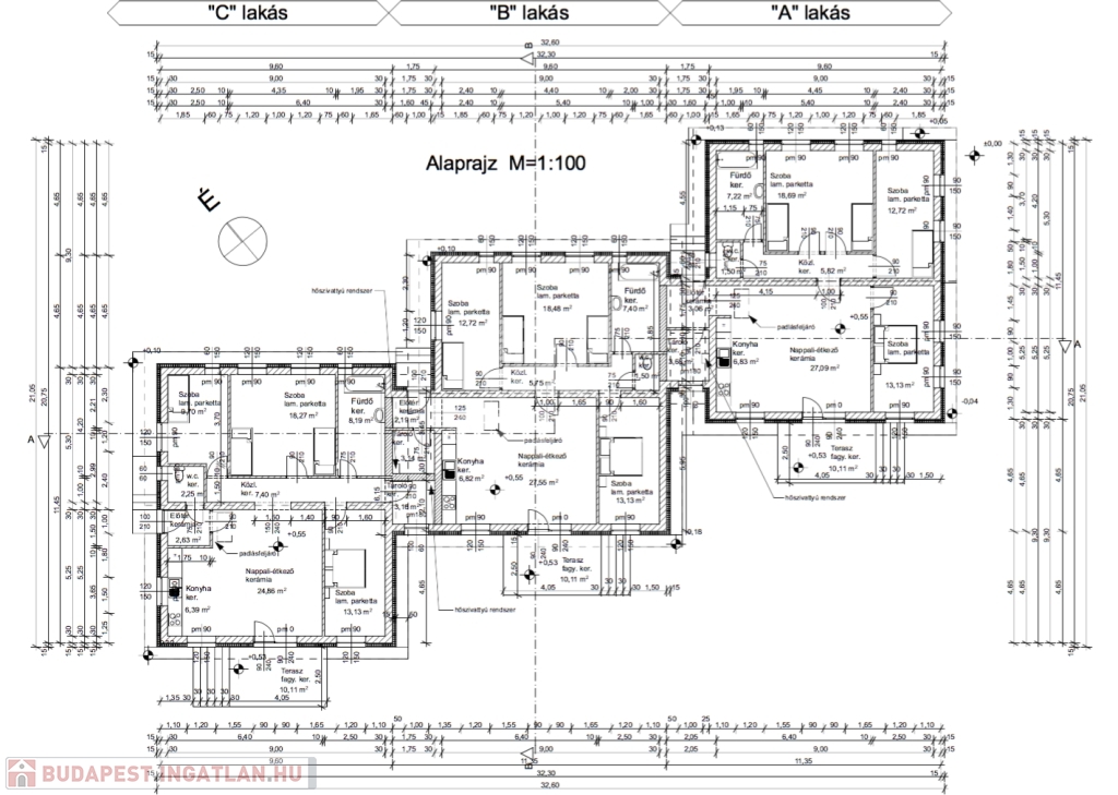 C-lakás 95,98 nm 373 m2-es telekrésszel.