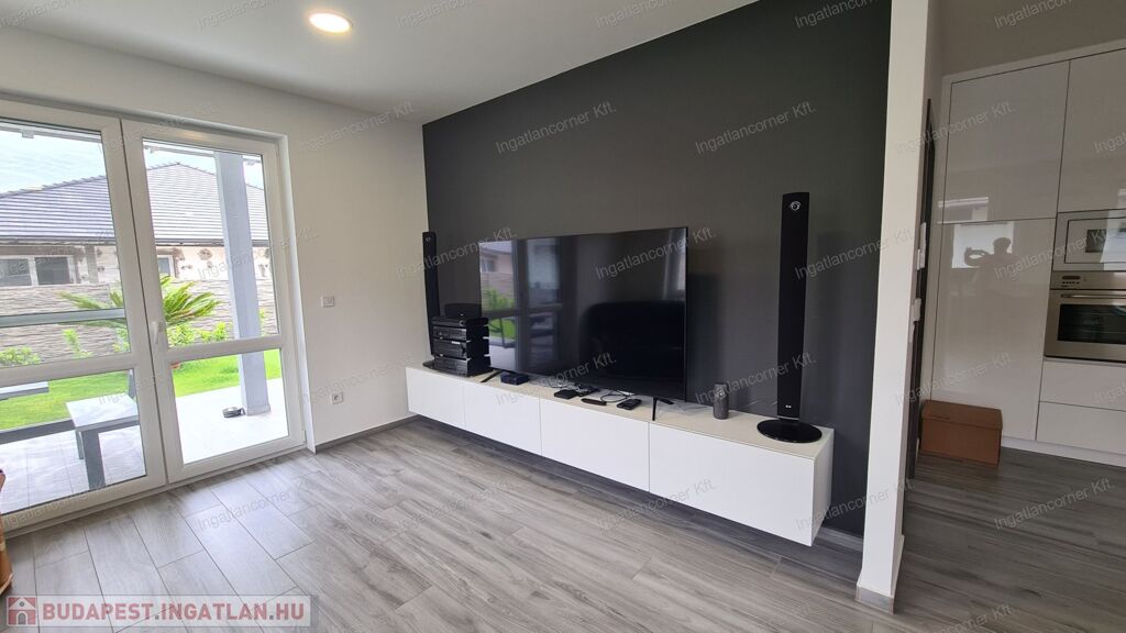 Eladó Dunaharaszti ÚJ luxus lakóparkjában ÚJ ÉPÍTÉSŰ földszintes, nappali + 3 és 4 szobás, dupla komfortos, tágas, ikerfél 450 nm-es saját telekkel.