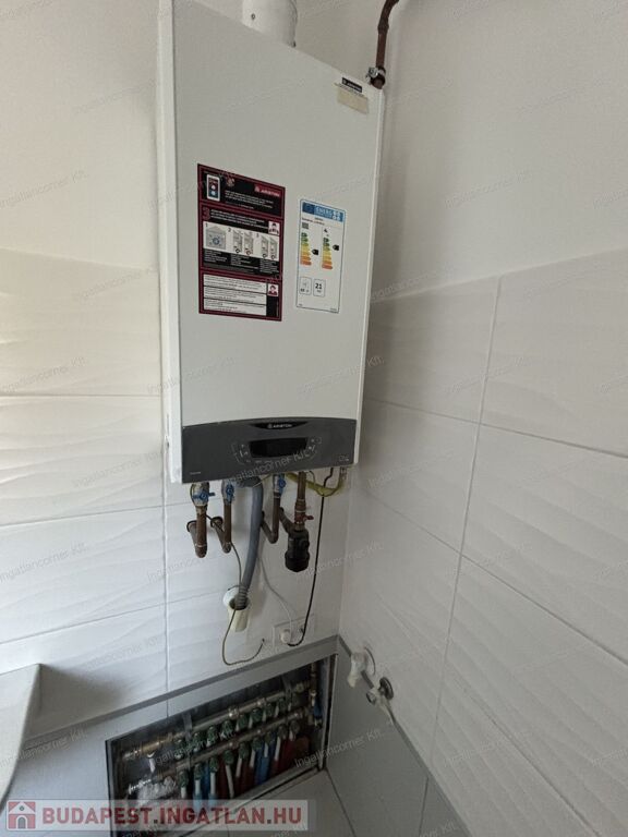 A fűtést és a meleg vizet egy kondenzációs kazán biztosítja, a fürdőszobában és a WC-ben padlófűtés, a többi helyiségben radiátoros hő leadással!