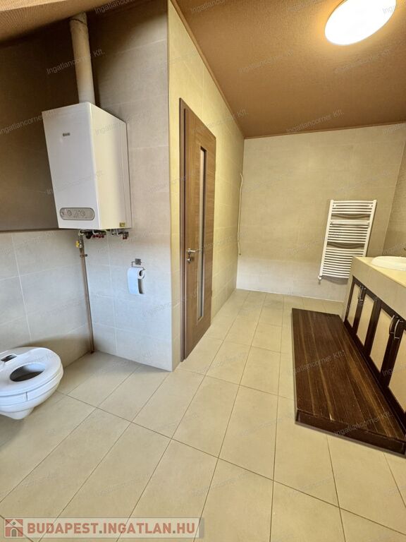 Kombi cirkó biztosítja a fűtést (padlófűtés a fürdőkben + törölköző szárító + radiátor + ) és a melegvíz ellátást.