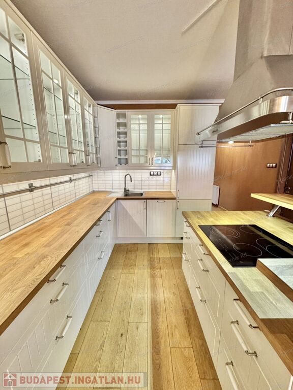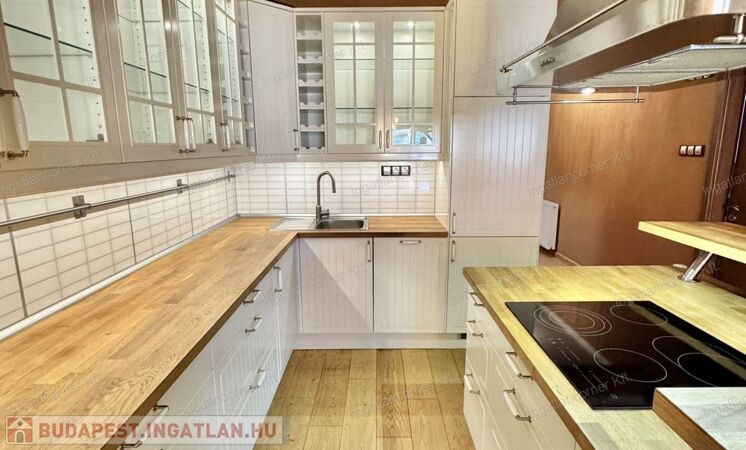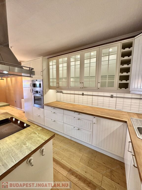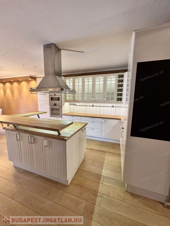 A nappali tölgyfa parkettàval burkolt és a saját kertre néz. A konyha felszereltsége: beépített sütő, -főzőlap, -mikró, -hűtő -mélyhűtő, -páraelszívó és -mosogatógép illetve konyha sziget.