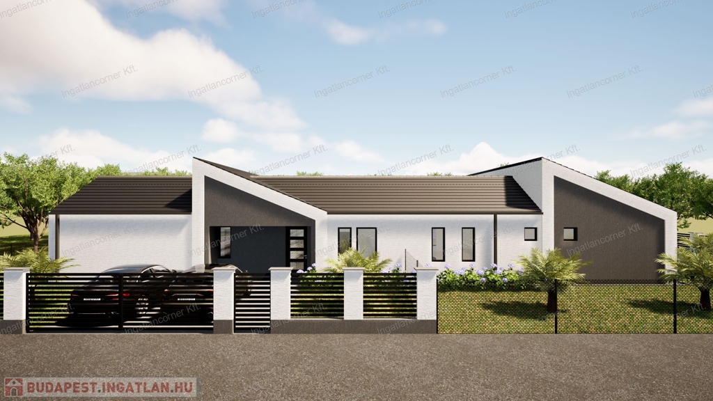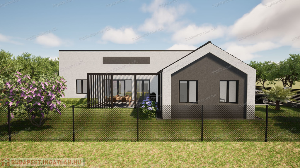 - FÖDÉMEN: 30cm-es (URSA) üveggyapot szigeteléssel, antracit színű beton cserepezéssel, antracit szinterezett eresz csatornával, telken elhelyezett szikkasztóba vezetve.
