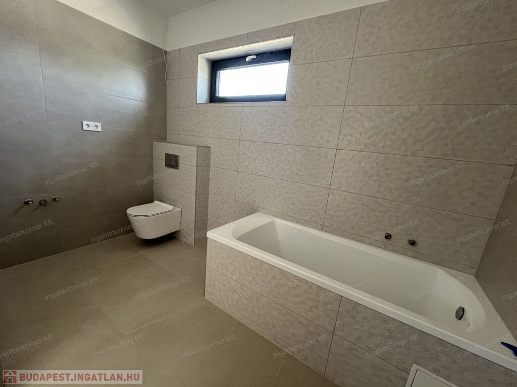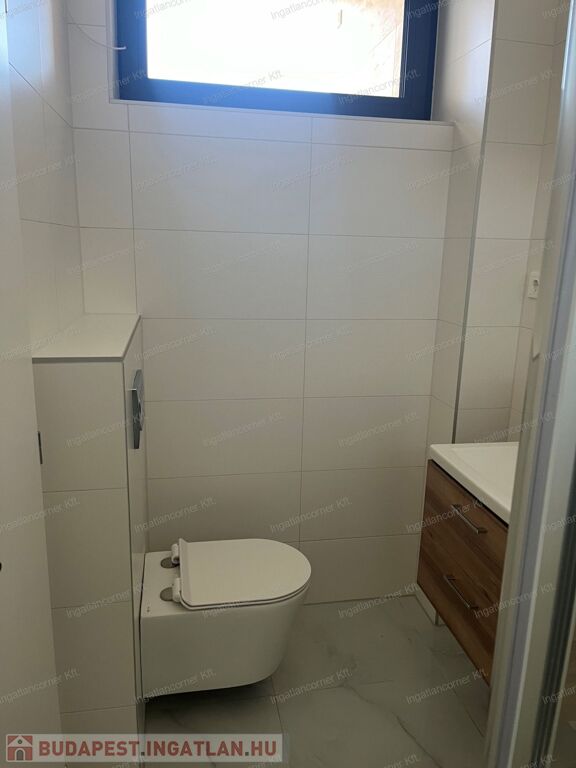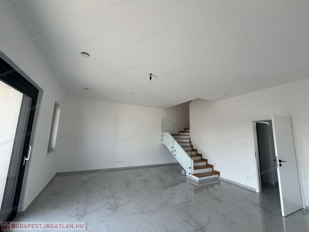 Az alsó szinten helyet kapott egy tágas amerikai konyhás-étkező, nappalival, valamint mellékhelyiség mosdóval.