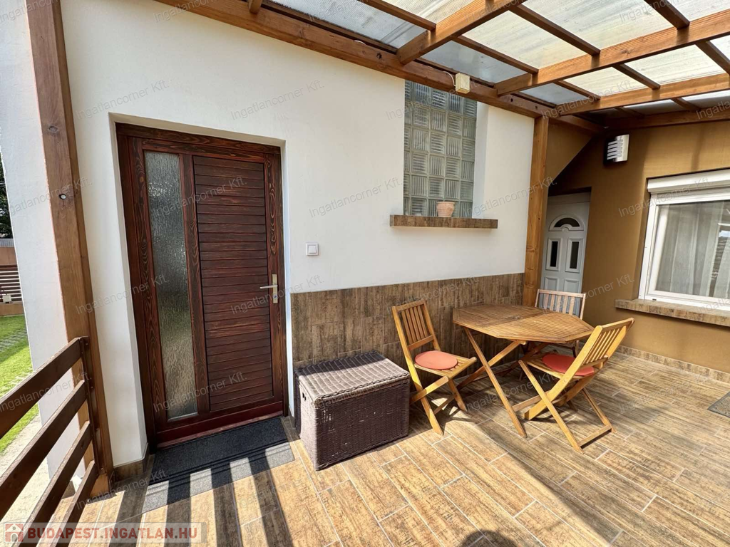 Az előszobából kilépve 13 nm-es TERASZ és szépen parkosított kert vár, fákkal, automata öntöző rendszerrel kiépítve. A házhoz egy nagy méretű GARÁZS is kapcsolódik, mellette még egy fedett kocsi beálló is. Külön épületben MŰHELY lett kialakítva, plusz tároló és egy szuper pince is.