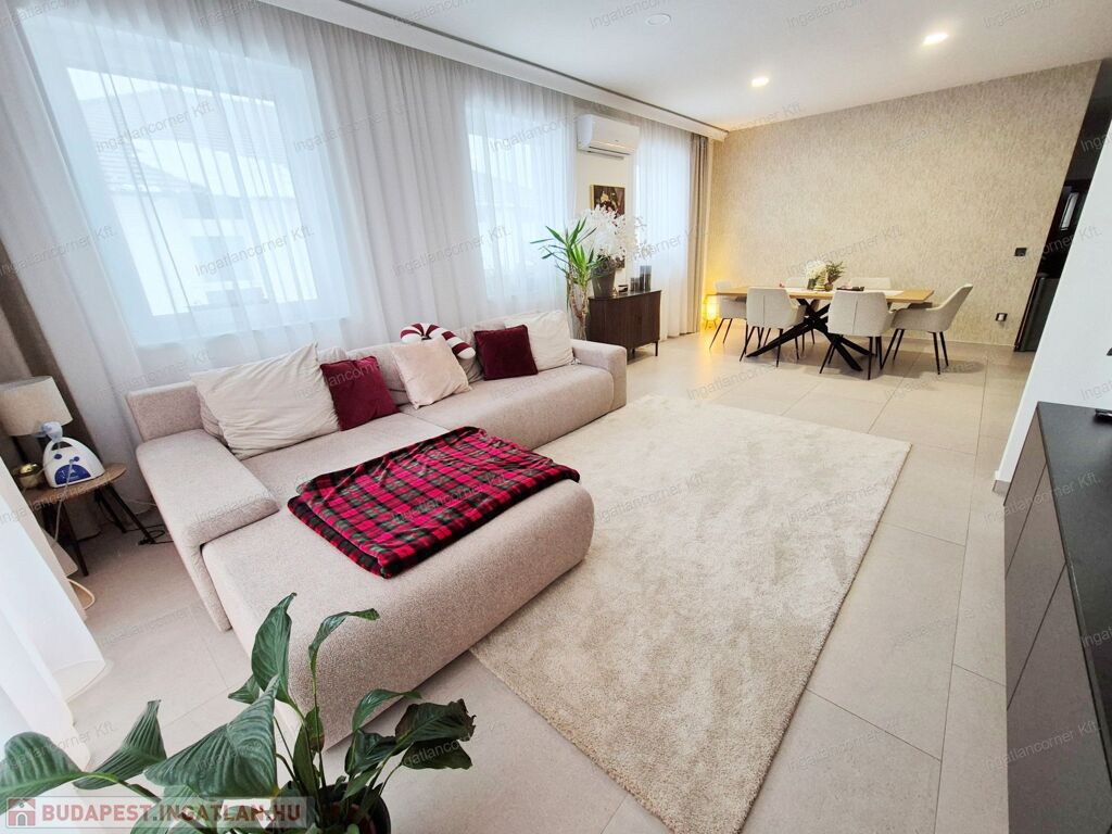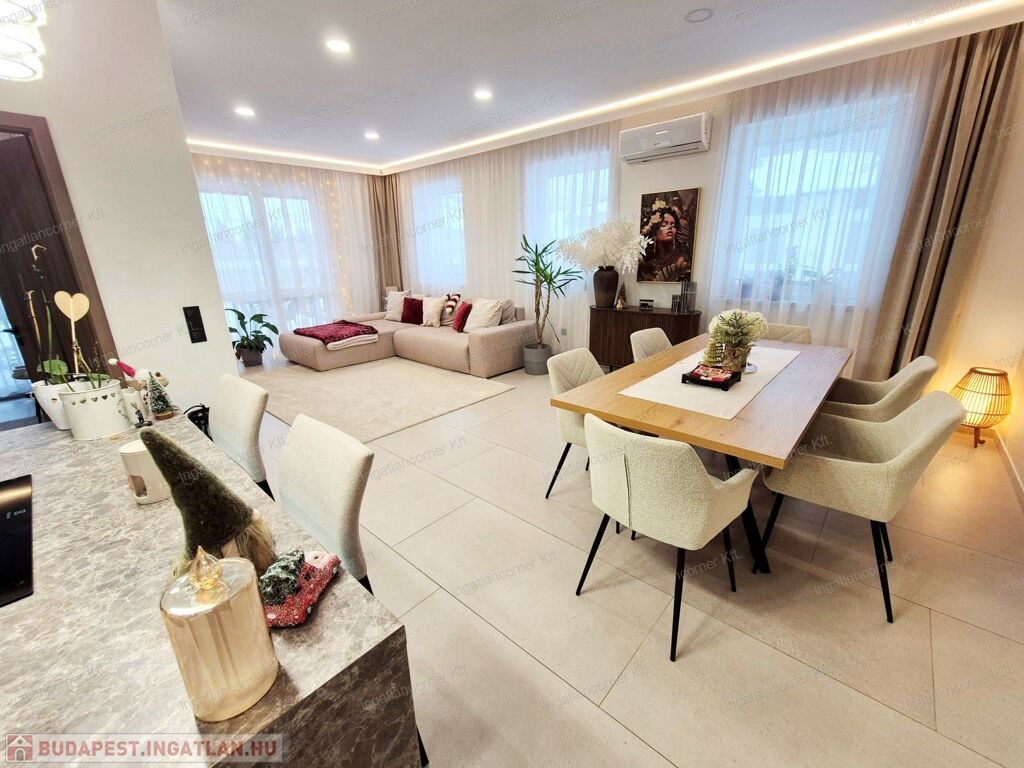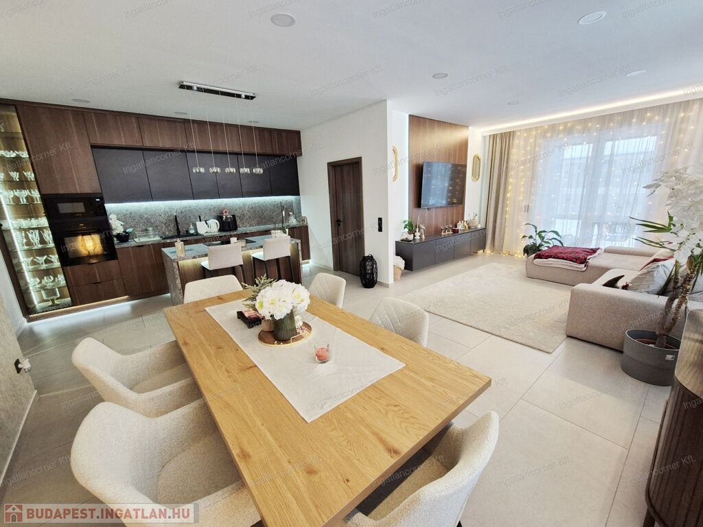 -REJTETT VILÁGÍTÁS: minden helyiségben távirányítóval vezérelhető mennyezeti led világítás, pluszban a konyhában a pult és konyhabútor alatt és a média fal két oldalán.