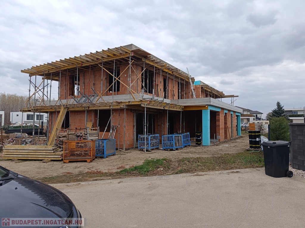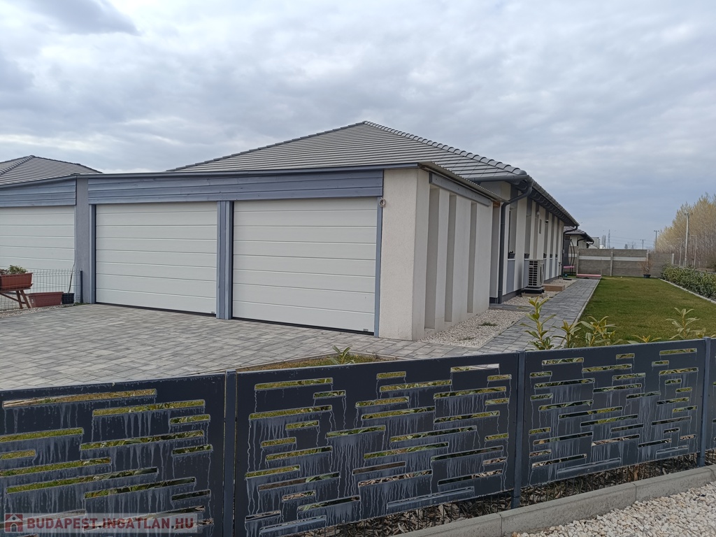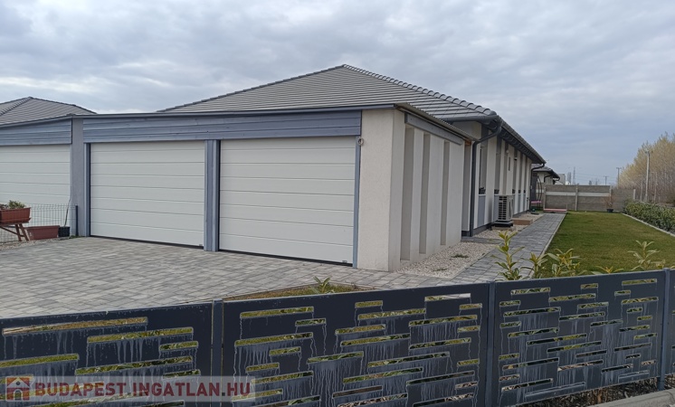 Az ikerházakhoz 450 m2 saját telekrész tartozik. Alapterület /netto/105 m2, + fedett hátsó terasz 21 m2, + dupla GARÁZS /40 m2/+ gépkocsi beálló ! .....-(( Össz.terület: Iker-fél+terasz+2 garázs-btto: 166 nm ))-.....
