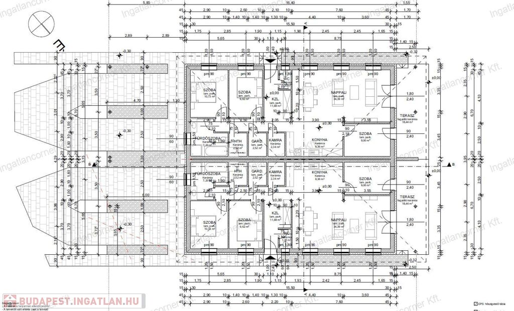 -külső határoló főfalak egységesen 30 cm vastag égetett vázkerámia téglából, +15 cm hőszigeteléssel,