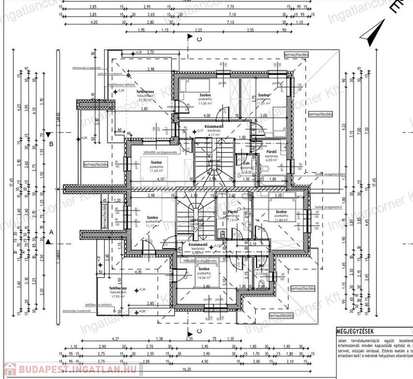 Az emeleten 3 hálószoba, fürdőszoba wc-vel, valamint egy külön illemhelyiség található.