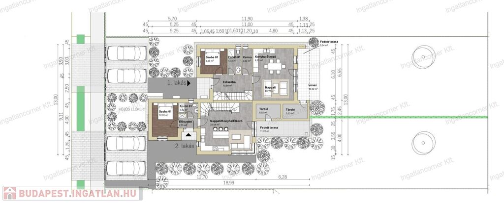 Az épület magas műszaki tartalommal készül, mai kornak és elvárásoknak megfelelően. A két lakás között DUPLA hang-gátló fal készül és külön kerül kiöntésre a födém is. Magas hangsúlyt fektettek a két lakás külön választására, hogy mindkettő lakó funkció önálló ház életérzését nyújtsa!