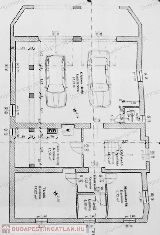 A 3 szintes épület alsó szintjén kapott helyett a dupla garázs, gépészeti helyiség, wc, mosókonyha, tárolók, mely szint szuterén így ablakokkal ellátott.