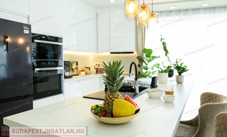 Teljesen felszerelt konyha, minőségi beépített bútorokkal