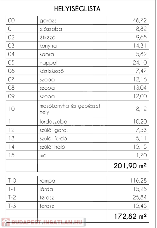 Nettó 149 nm alapterület, 47 nm garázs, 41 nm terasz.