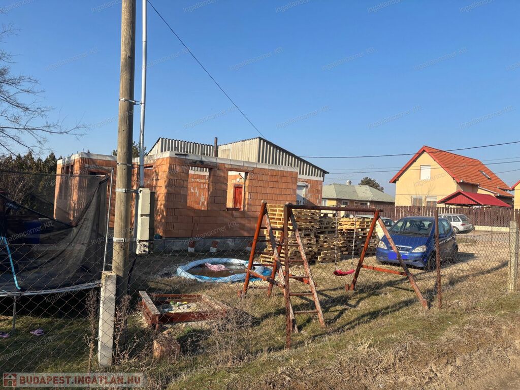 Eladó Dunaharaszti Alsóváros részen egy 450 m2 telekkel rendelkező, nettó 86 m2 alapterületű + terasz (8 m2), befejezésre váró családi ház. Villany, víz, csatorna van, gáz nincs bevezetve.
