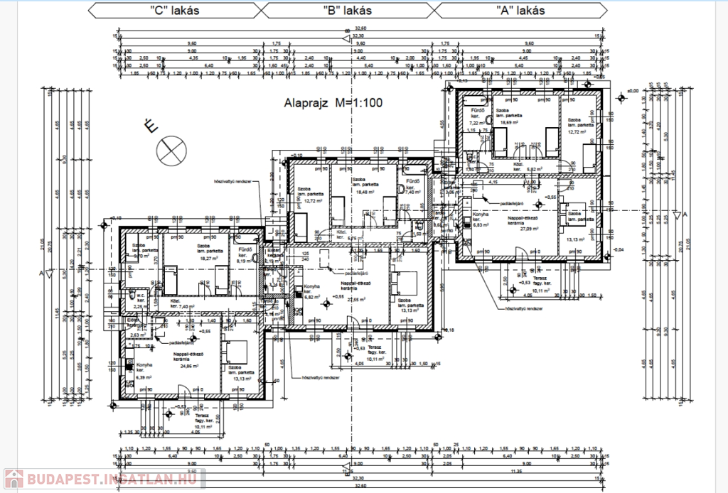 A 3 lakás minimálisan és a hozzá tartozó telkek mérete is eltér: